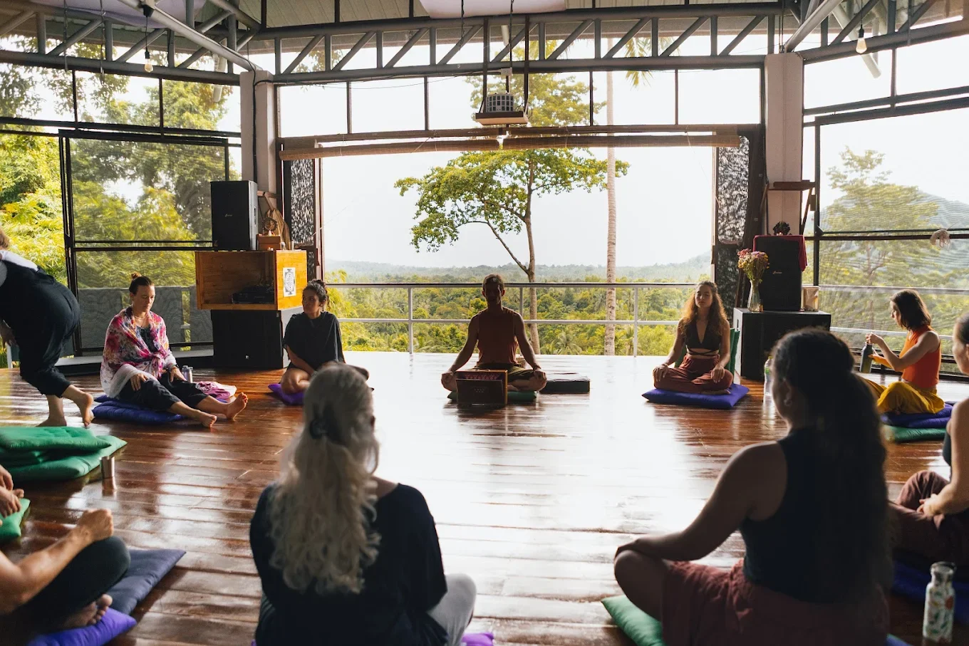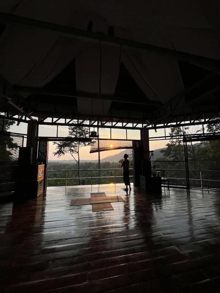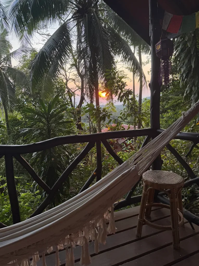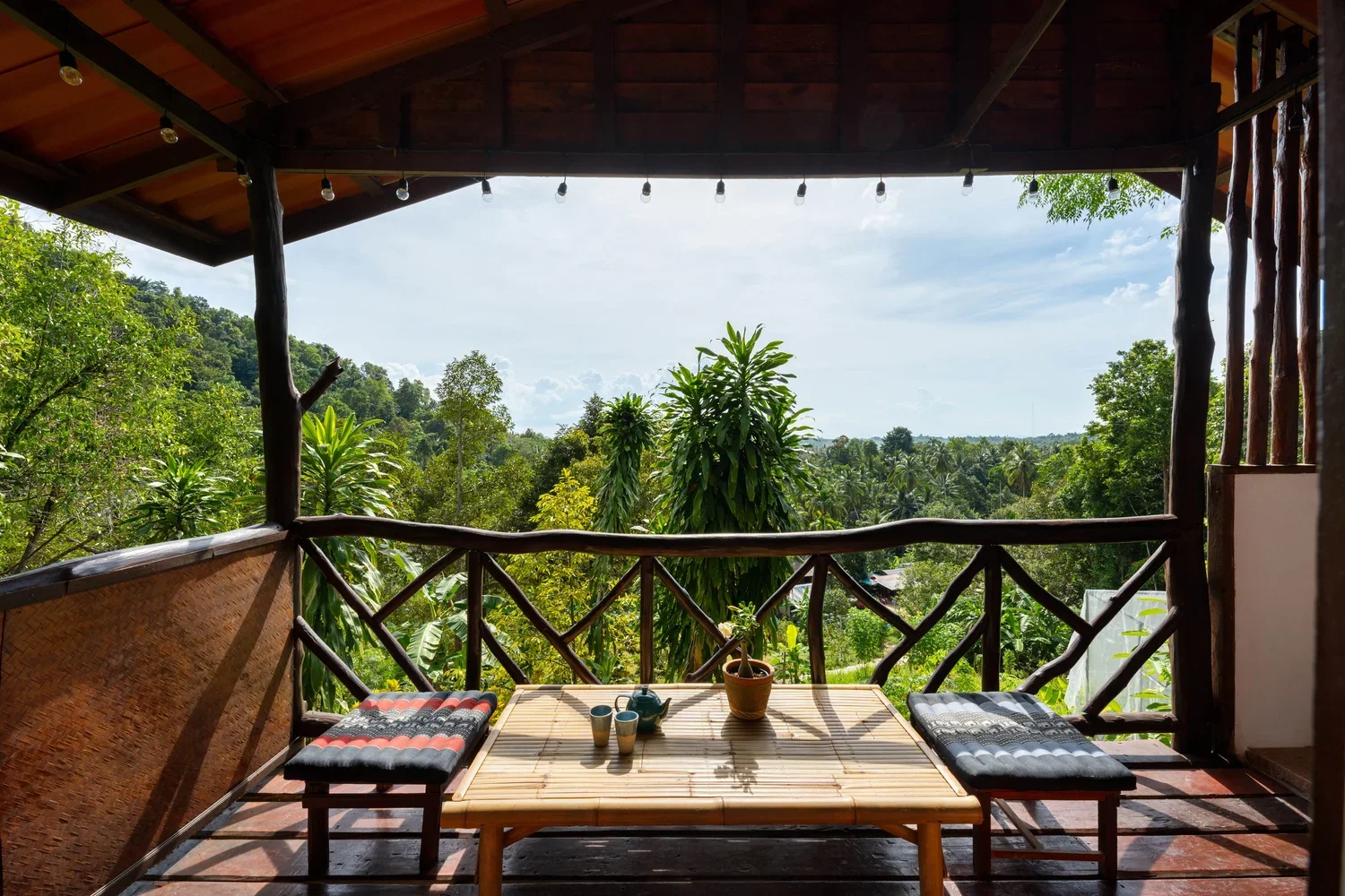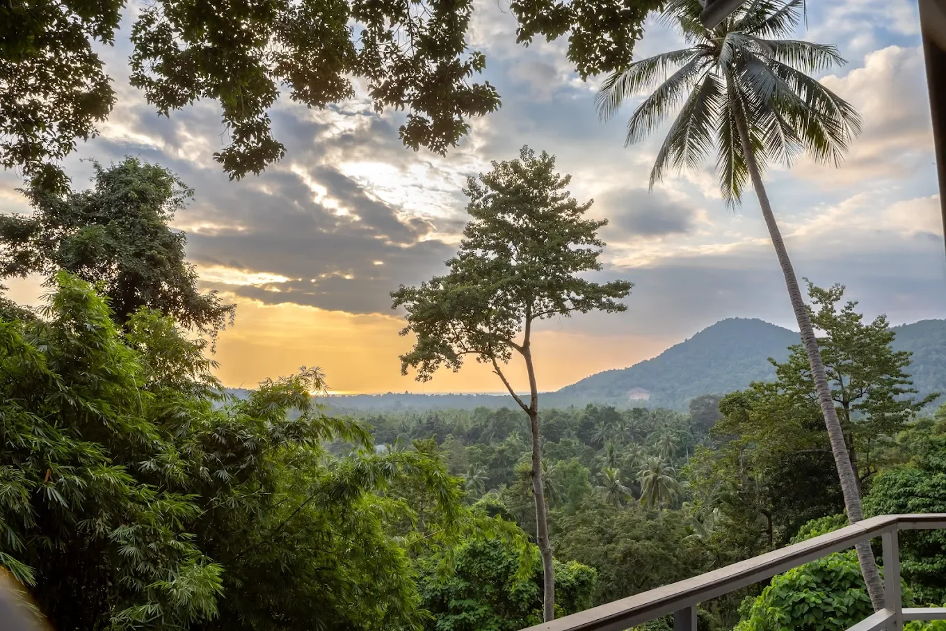 Die Retreat Location The Source liegt eingebettet in diese grüne Fülle. Stell dir vor, du wachst mit Dschungelklängen auf, atmest feuchte, grüne Luft und rollst deine Matte in einer offenen Shala aus, die den Blick weit bis zum Meer trägt. Genau hier landen wir: ein ruhiges Refugium im Herzen von Koh Phangan, verborgen zwischen Bäumen, nahe Wasserfällen und einem Gefühl von „ich bin angekommen“ - an eine Platz weit weg vom Lärm und ganz nah bei dir.